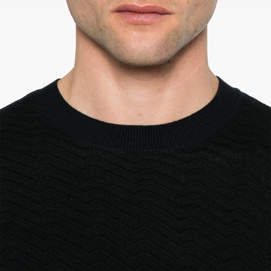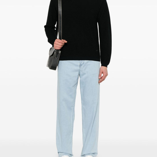 ribbed cuffs and hem wool blend crewneck sweater size and fit - this piece fits true to size. we recommend you get your regular size. model is 1,84m / 6ft 1in wearing size m