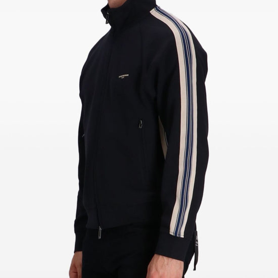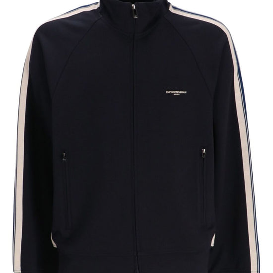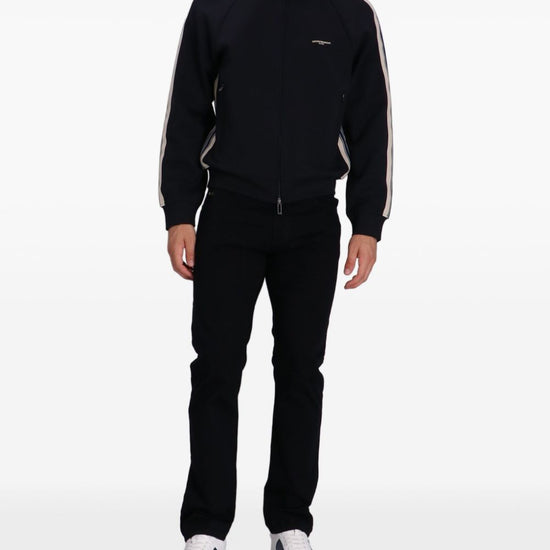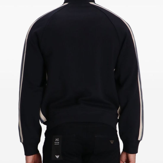 side stripe detail logo cotton zipped sweatshirt size and fit - .