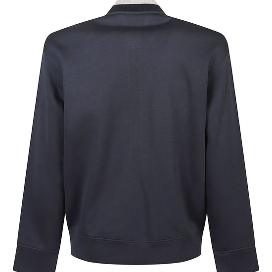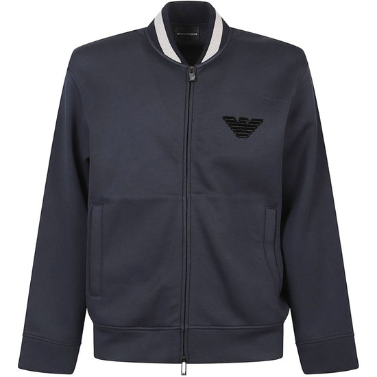 Navy blue ribbed collar zip fastening eagle emblem long sleeves logo zipped sweatshirt