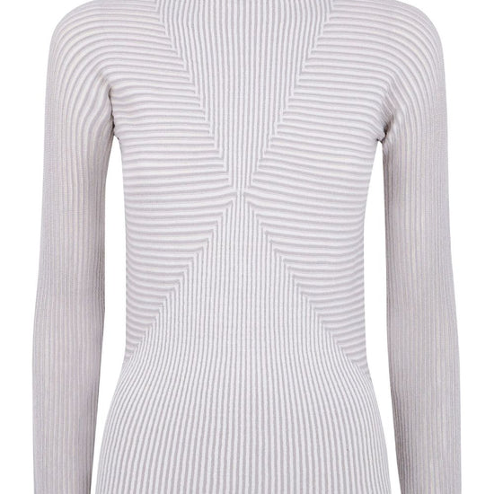Fancy grey striped pattern roll neck long sleeves ribbed knit striped top