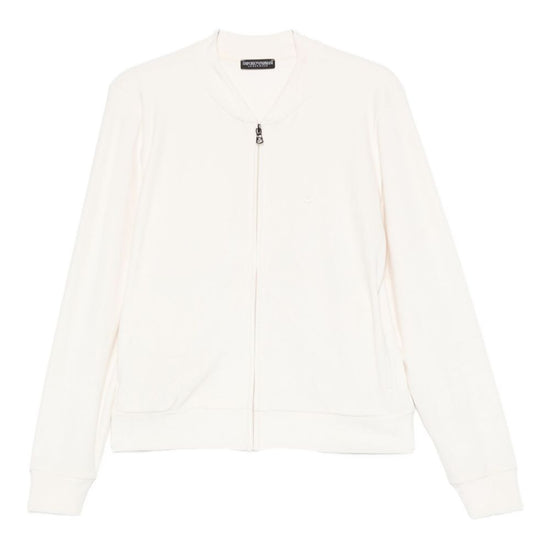 Ivory zip fastening long sleeves round neck tonal logo detail ribbed hem