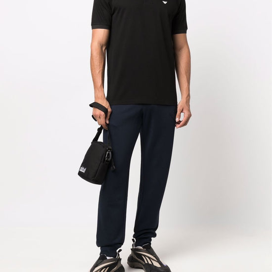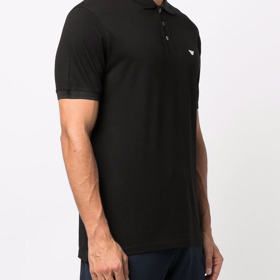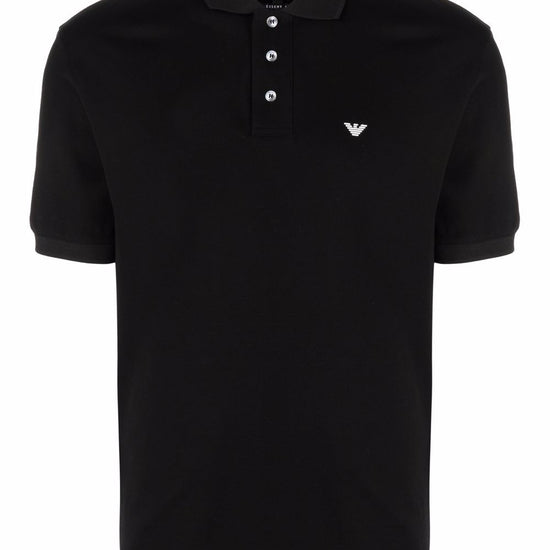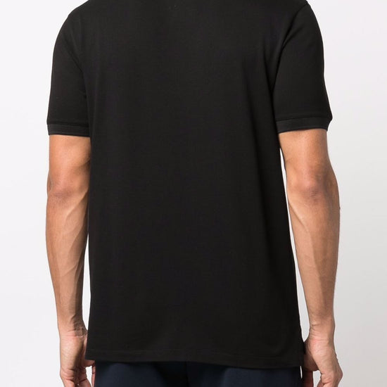 Black cotton polo collar front button fastening short sleeves straight hem cotton polo shirt