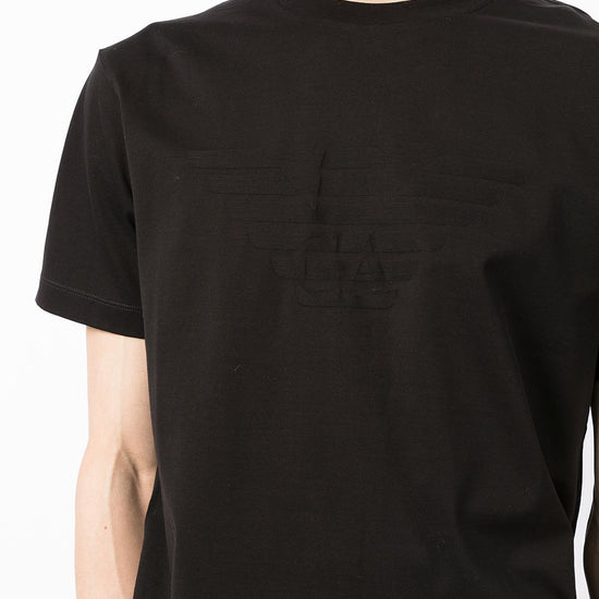 Deep-blue cotton round neck short sleeves logo print to the front straight hem logo cotton t-shirt size and fit - chest: 124.0 centimetres. sleeve length: 23.0 centimetres. shoulder width: 56.0 centimetres.