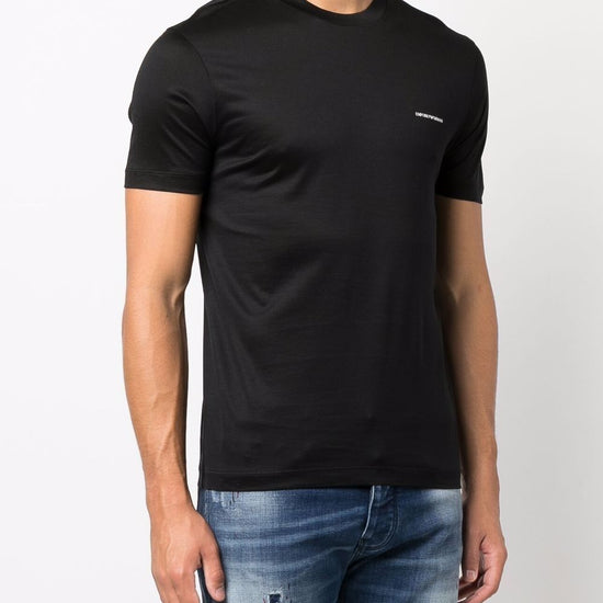 Black cotton/lyocell logo print at the chest crew neck short sleeves straight hem logo cotton blend t-shirt