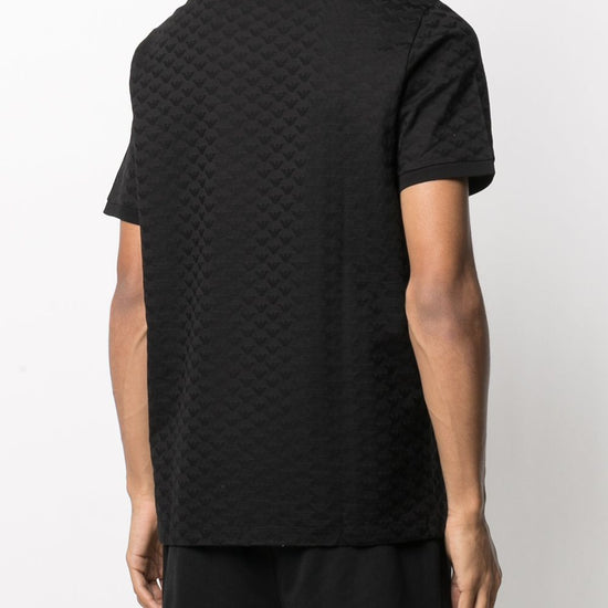 Black cotton round neck short sleeves straight hem logo cotton t-shirt
