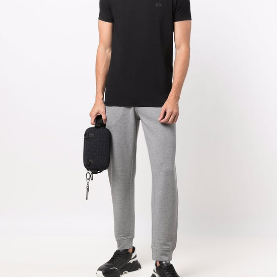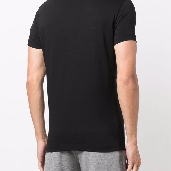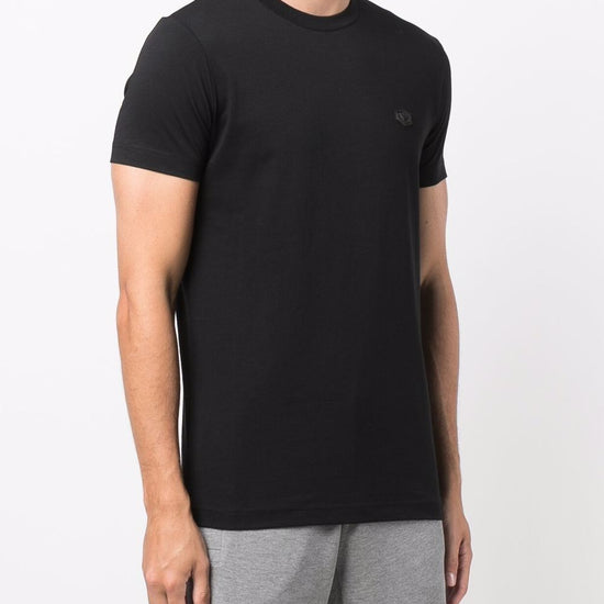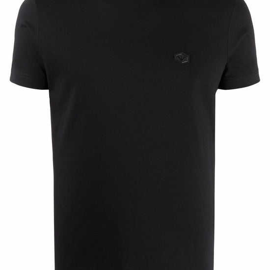 Jet-black cotton round neck short sleeves straight hem logo patch to the front logo cotton t-shirt