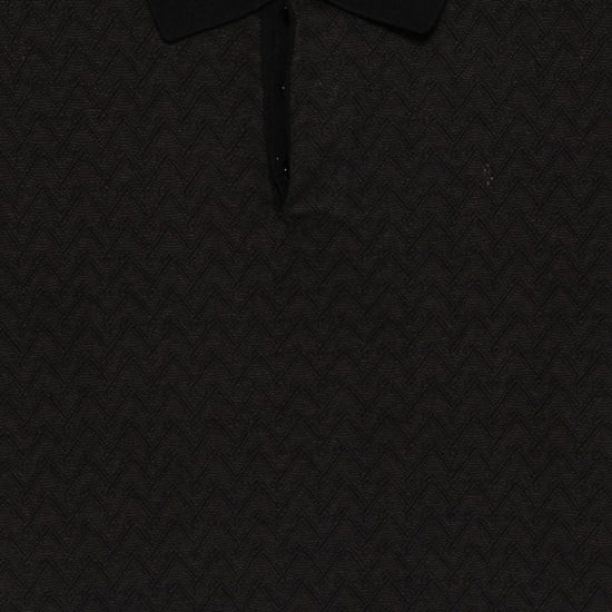 Black short sleeves polo collar button placket geometric pattern ribbed hem cotton polo shirt