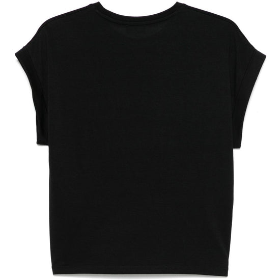 Black crew neck short sleeves turn-up cuffs straight hem  logo t-shirt size and fit - this piece fits true to size. we recommend you get your regular size. model is 1,75m / 5ft 8in wearing size s