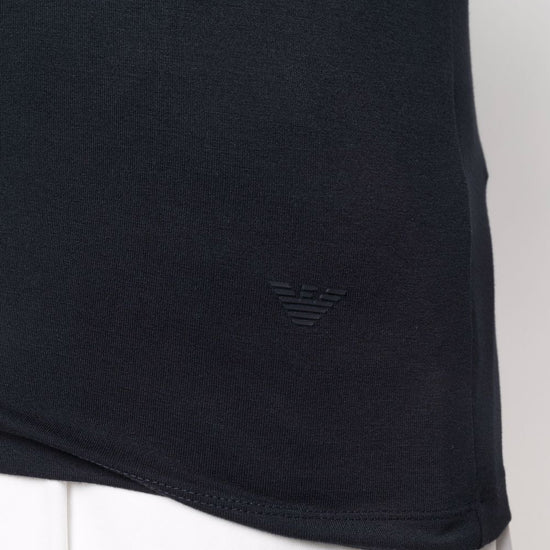 Navy-blue round neck short sleeves straight hem logo t-shirt
