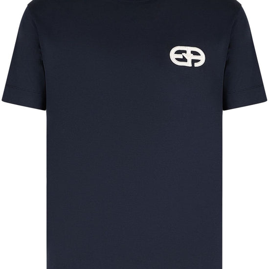 Navy blue cotton-lyocell blend jersey texture logo patch at the chest crew neck short sleeves straight hem logo cotton blend t-shirt