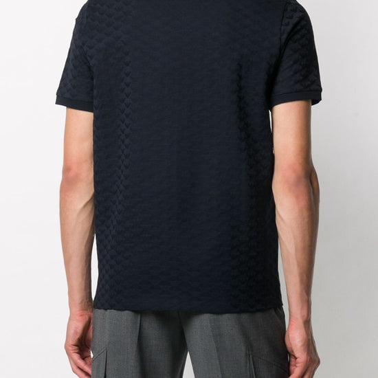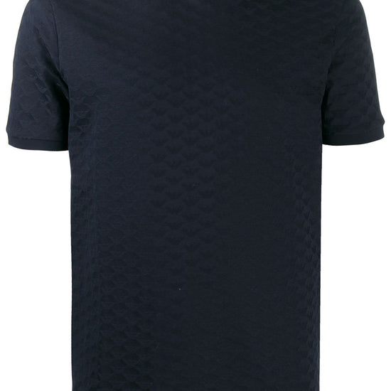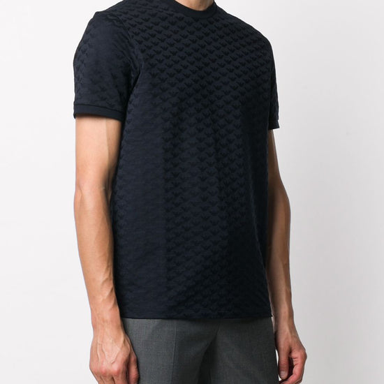 Cotone blu navy, stampa logo in rilievo su tutta la superficie, girocollo, maniche corte, orlo dritto. logo cotton t-shirt