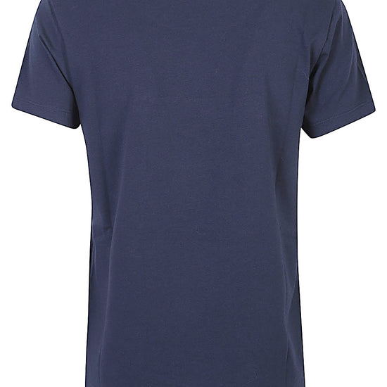 Blue t-shirt, short sleeves, straight hem, crew neck, logo on the front. logo cotton t-shirt