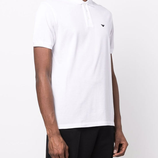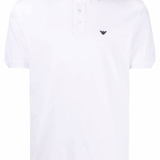 White cotton embroidered logo at the chest classic collar front button fastening short sleeves cotton polo shirt