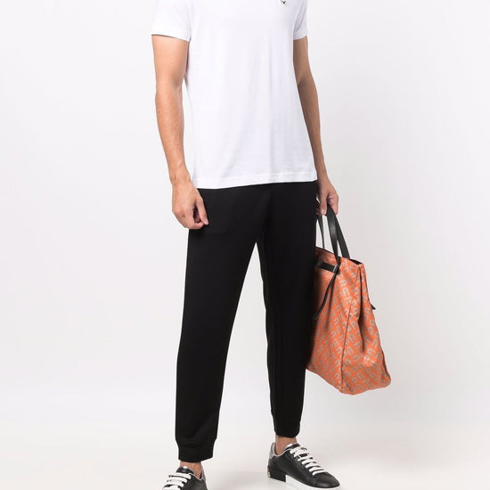 Bright-white cotton round neck short sleeves logo patch at the chest straight hem logo cotton t-shirt