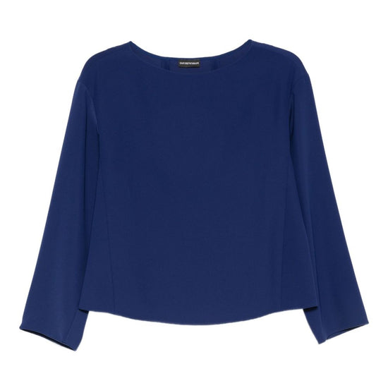 Royal blue long sleeves boat neck straight hem boat-neck top