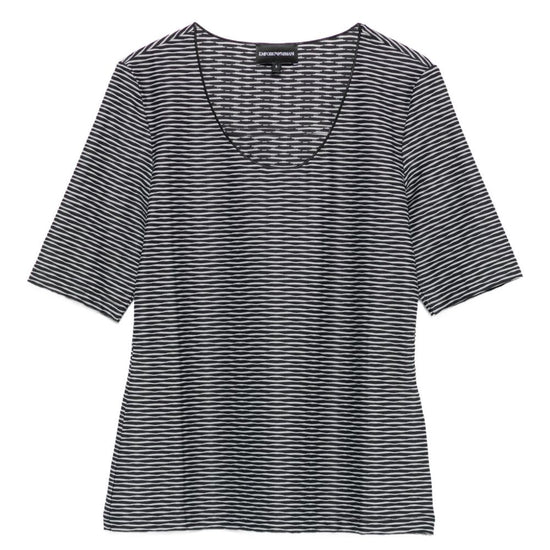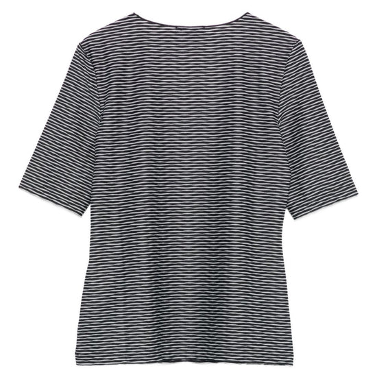 Grey horizontal stripes short sleeves scoop neck printed crewneck top