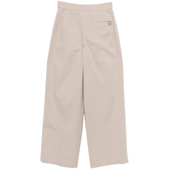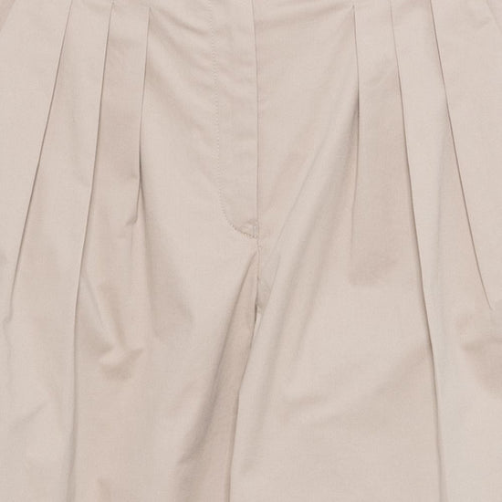 Light beige pleats metal hardware wide leg cotton trousers