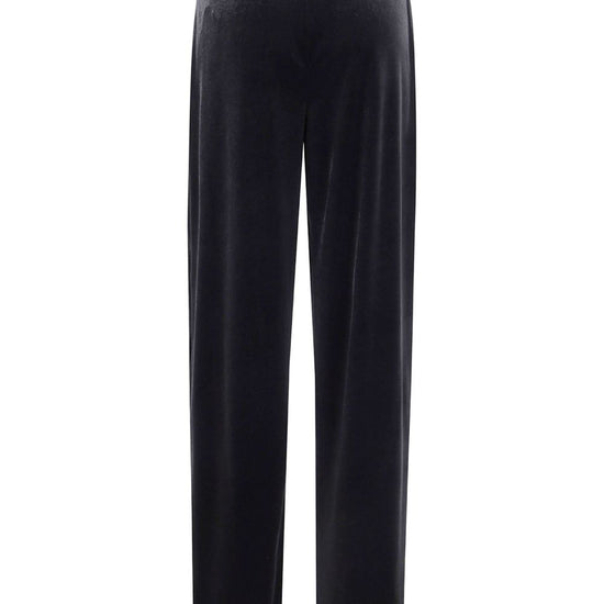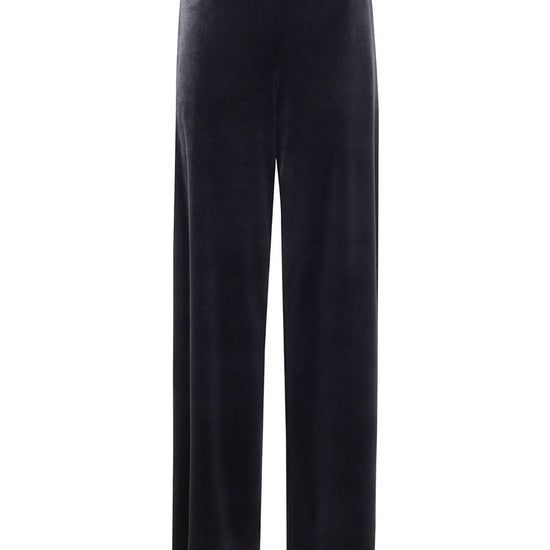 Black velvet effect straight leg elasticated waistband velvet trousers