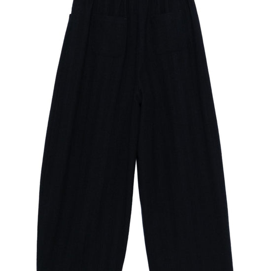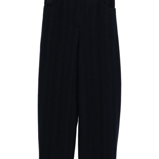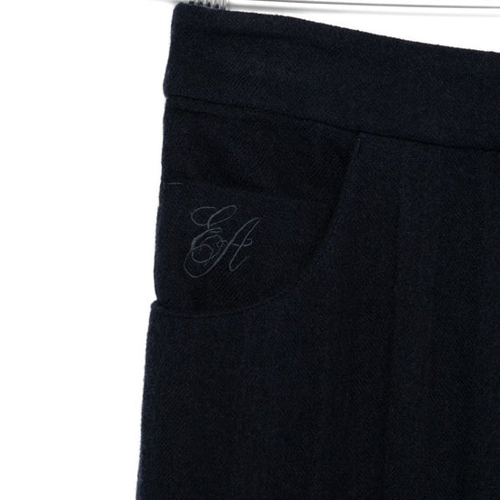 Blue logo embroidery classic five pockets rear elasticated waistband wool trousers