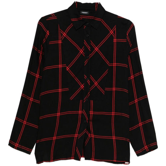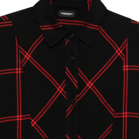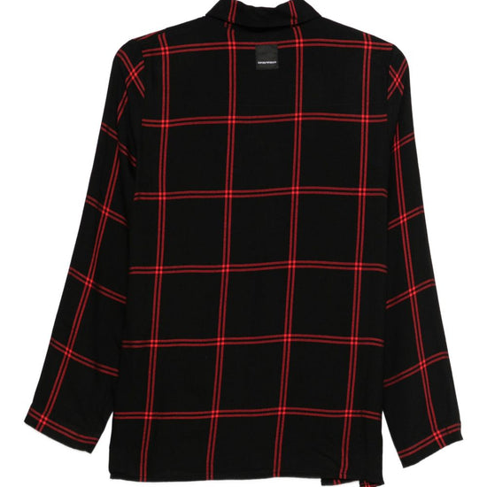 Black checked pattern button fastening long sleeves collar elasticated waistband