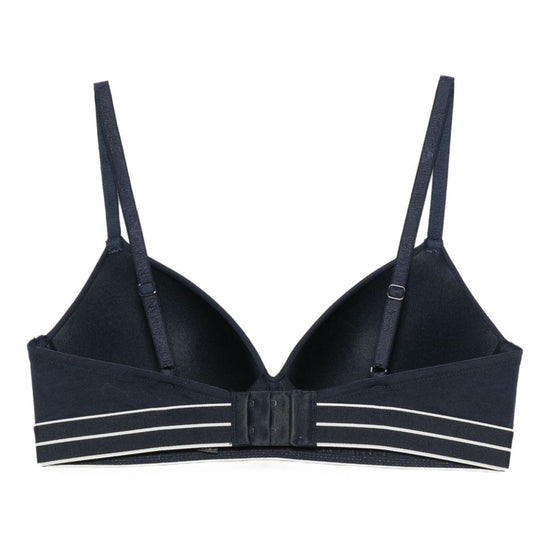 Blue adjustable straps logo embellishment hook-and-eye fastening logo padded bra