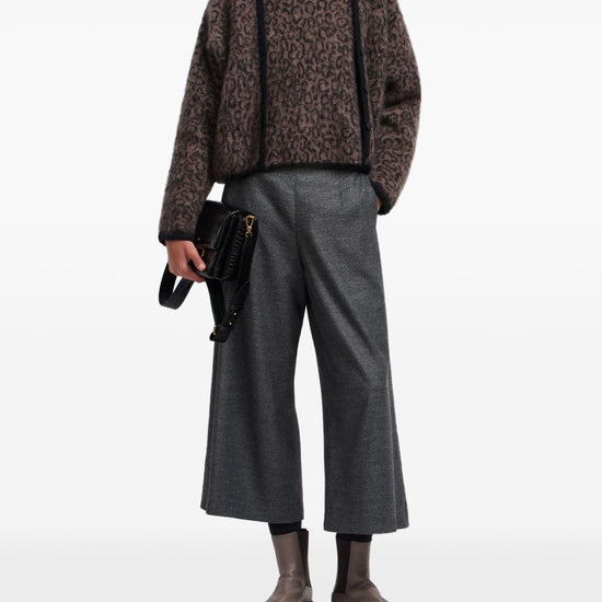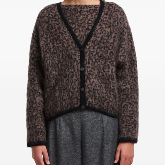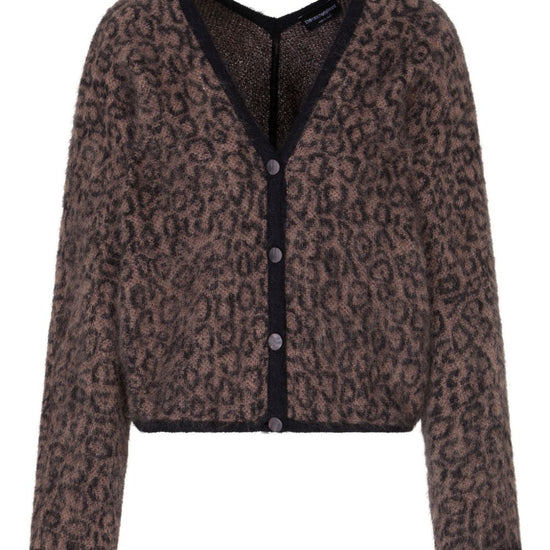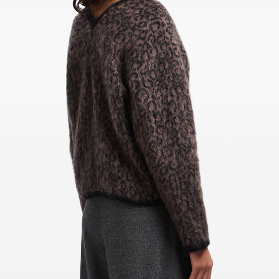 Brown leopard pattern v-neck button fastening long sleeves wool blend cardigan