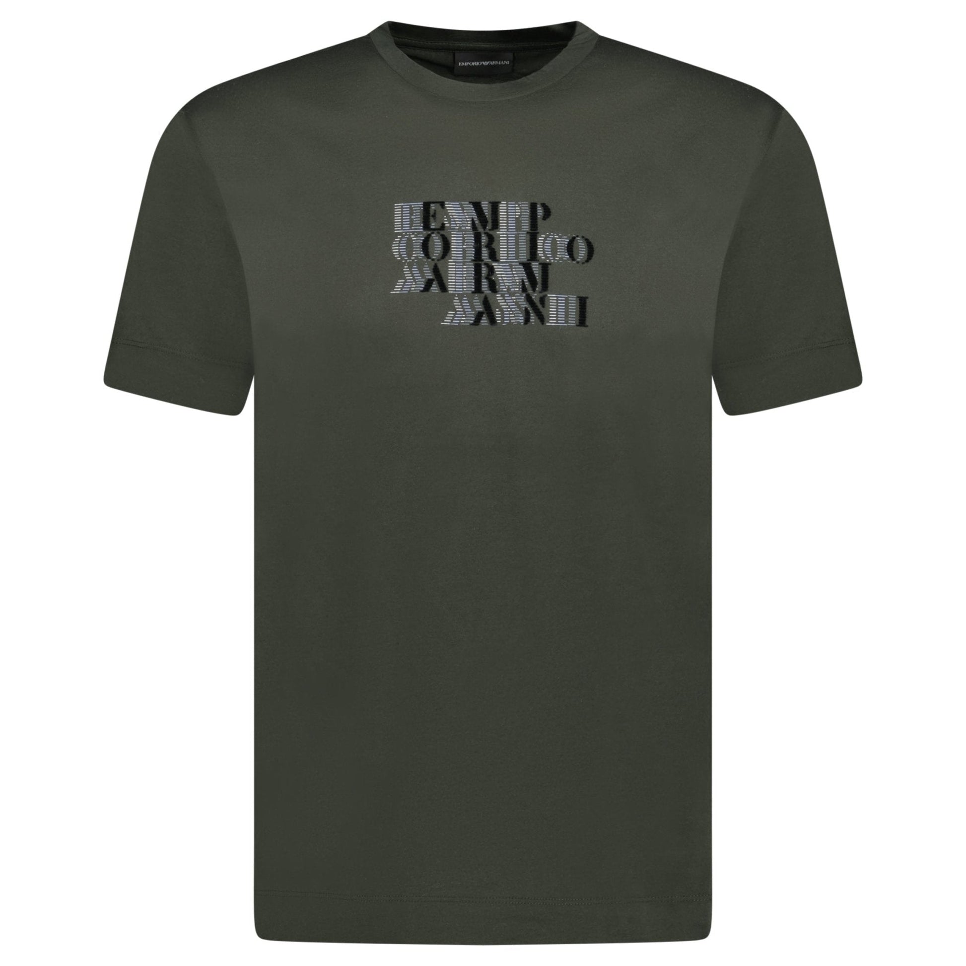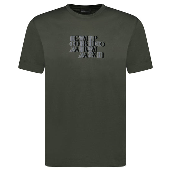 Emporio Armani Velvet Writing Logo Mercerised T-Shirt Khaki Green