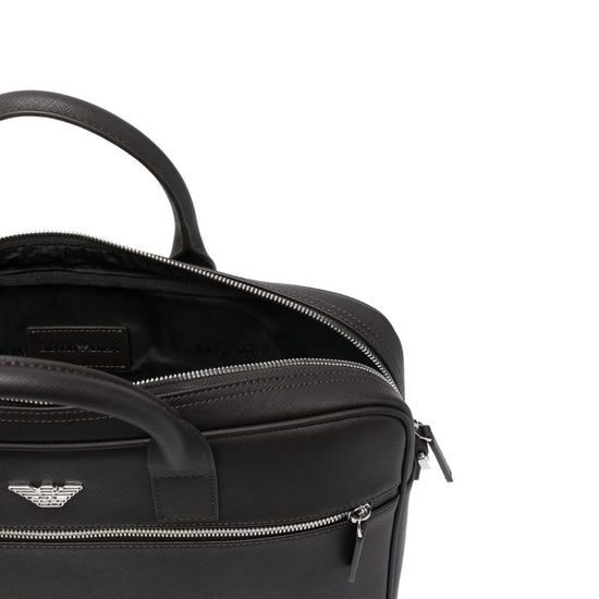 Brown top handle logo plaque zip fastening detachable shoulder strap slip pocket this piece comes complete with a protective dust bag. small briefcase