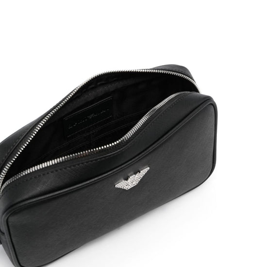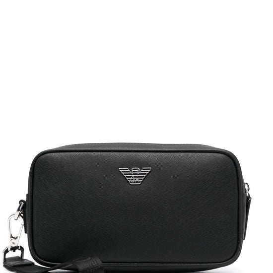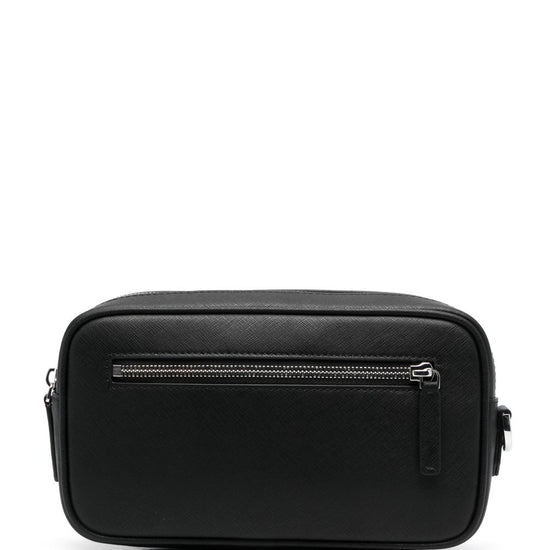Black textured finish silver-tone logo plaque top zip fastening silver-tone hardware detachable wrist strap main compartment multiple internal slip pockets wash bag size and fit - . width 8,66 in / 22 cm height 4,72 in / 12 cm depth 2,36 in / 6 cm handle 7,09 in / 18 cm