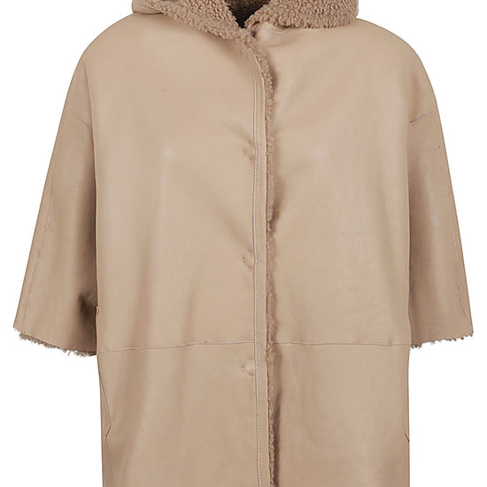 Poncho jacket with buttoned sleeves, hood, wide sleeves, front button closure and welt pockets. alice suede leather jacket size and fit - this piece fits true to size. we recommend you get your regular size. model is 1,75m / 5ft 8in wearing size 36 (fr)
