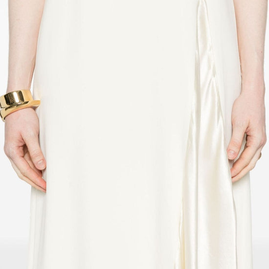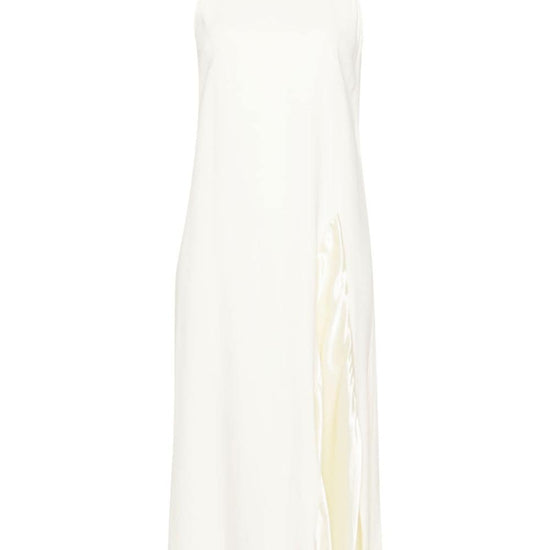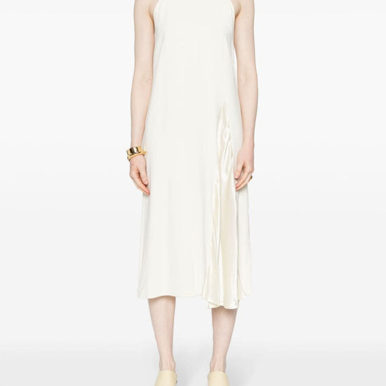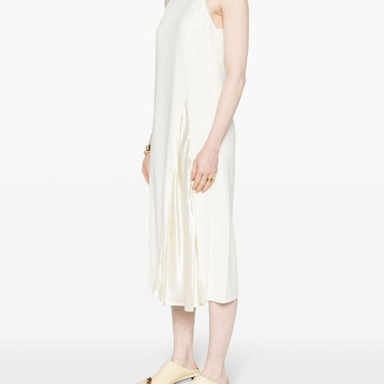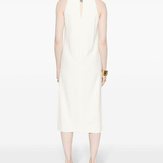 Cream white stretch-design round neck sleeveless racerback mid-length unlined flared hem single rear button fastening blusa m/l aperta sleeveless midi dress size and fit - this piece fits true to size. we recommend you get your regular size. model is 1,75m / 5ft 8in wearing size 40 (it)