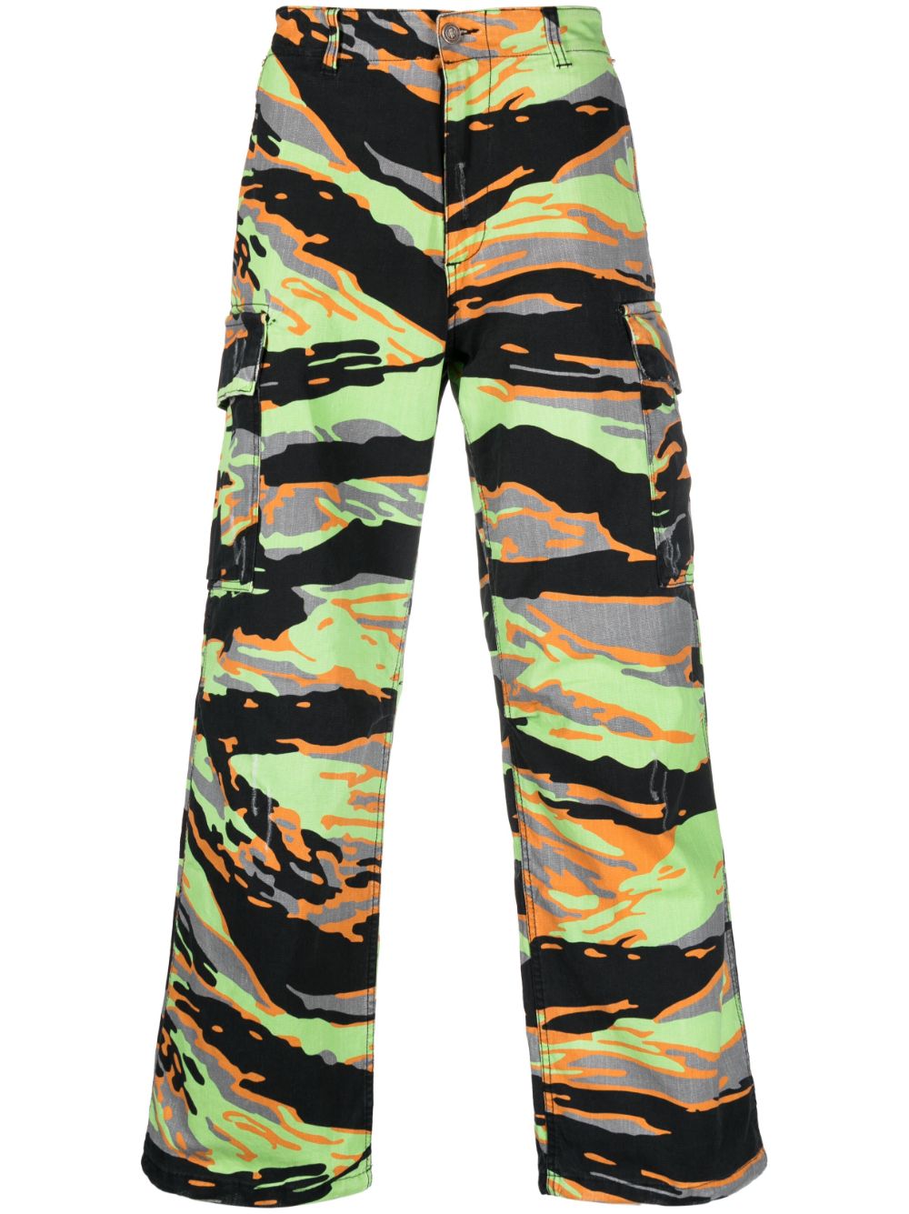 Graphic-print cargo trousers from erl featuring multicolour, stretch-cotton, belt loops, all-over graphic print, button fly fastening, straight leg, two side cargo pockets and two rear flap pockets. cargo, stampa printed cotton cargo trousers size and fit - this piece fits true to size. we recommend you get your regular size. model is 1,84m / 6ft 1in wearing size m