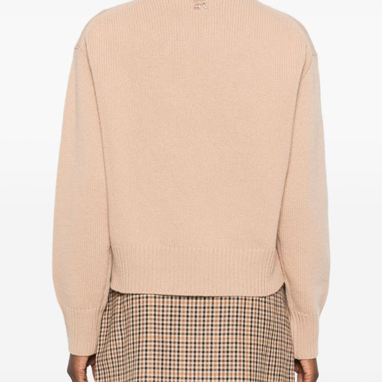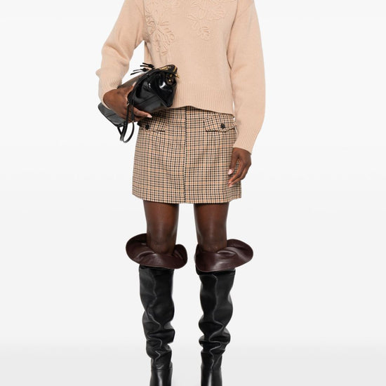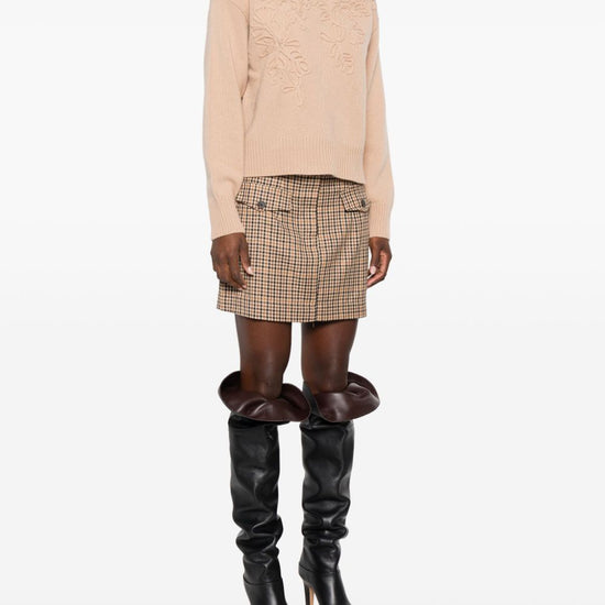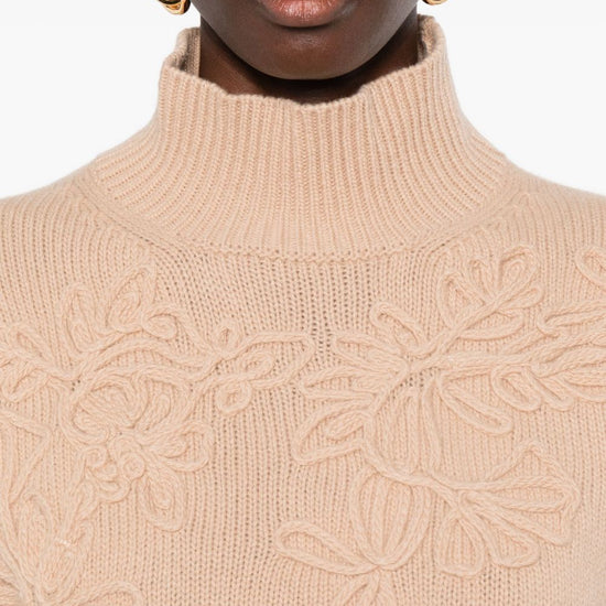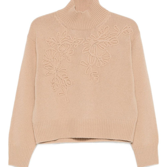 Brown floral design high neck long sleeves ribbed hem ribbed cuffs turtle-neck sweater