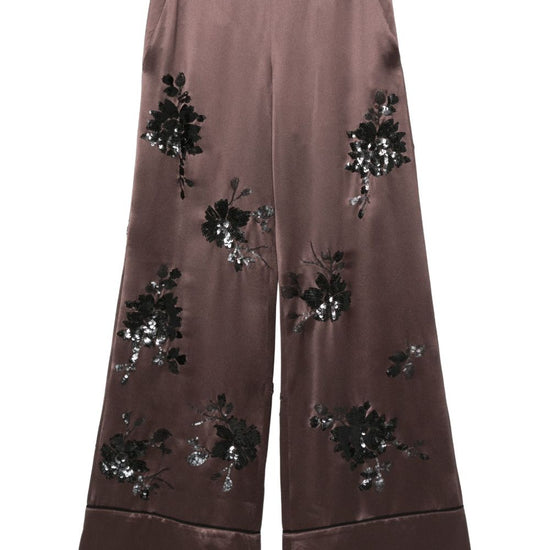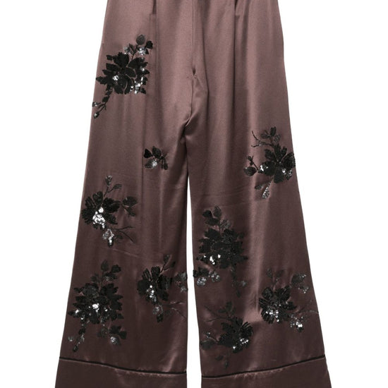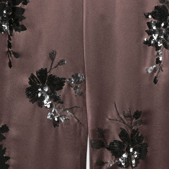 Brown floral embellishment side pockets tonal stitching  embroidered trousers