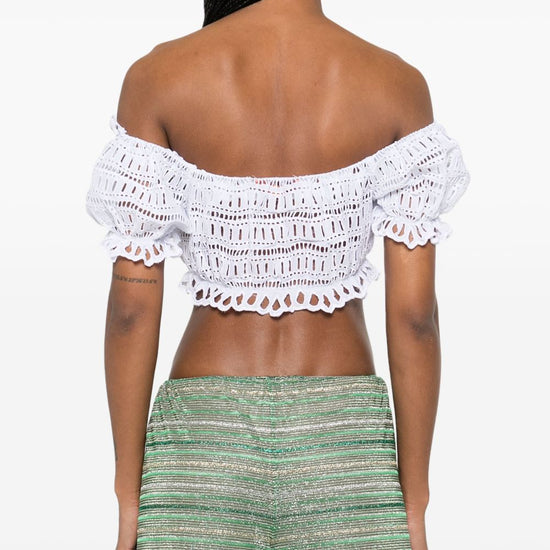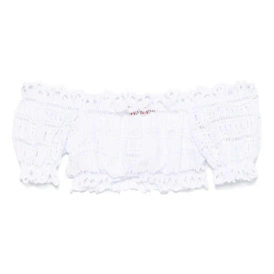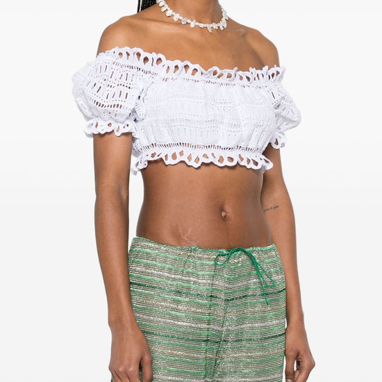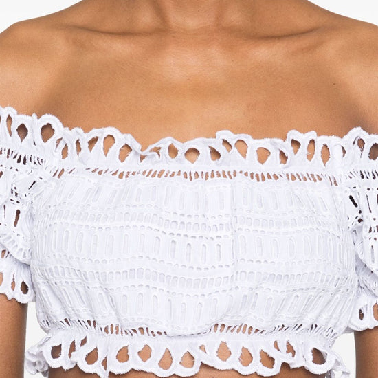 White broderie anglaise scallop edge short puff sleeves cropped lace cotton top size and fit - this piece fits true to size. we recommend you get your regular size. model is 1,75m / 5ft 8in wearing size 40 (it)