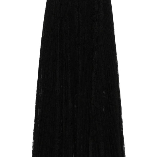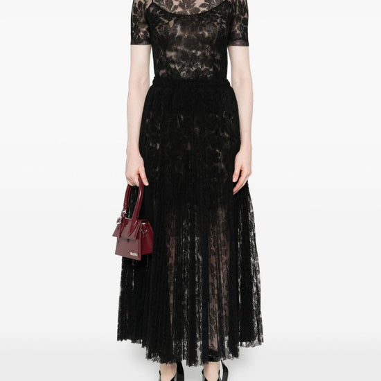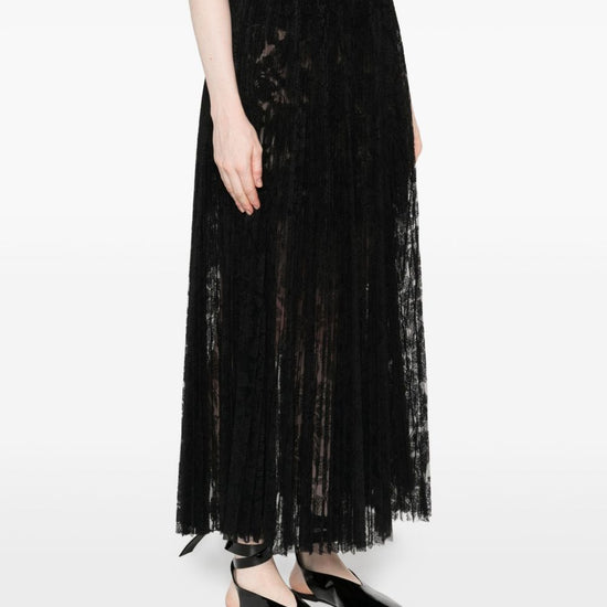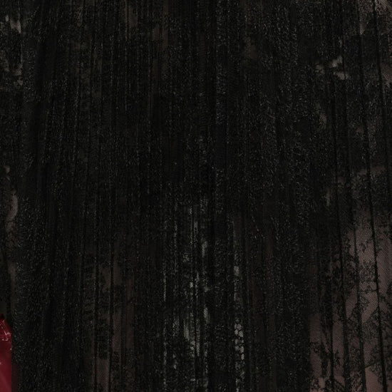 Black pleated lace fabric elasticated waistband pleated midi skirt