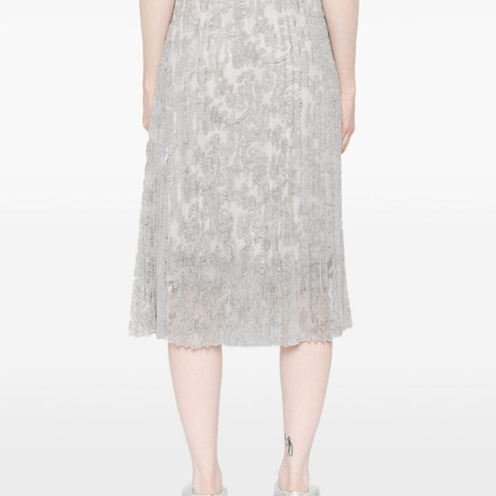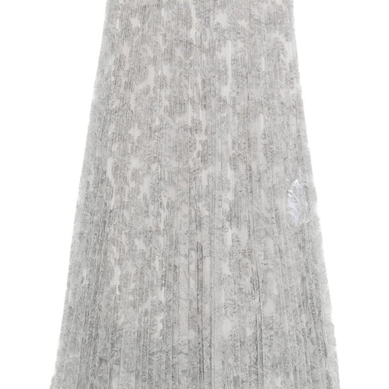 Grey pleated texture floral pattern midi length sheer fabric  pleated midi skirt