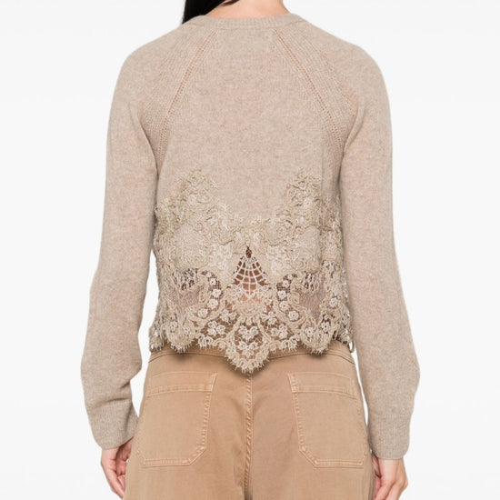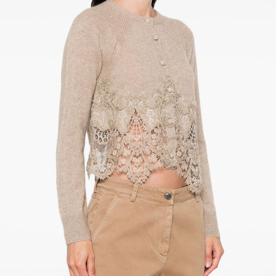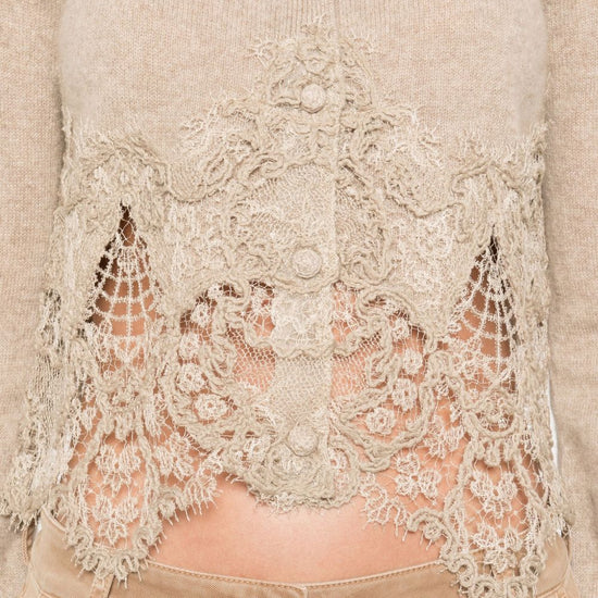 round neck lace cashmere cardigan
