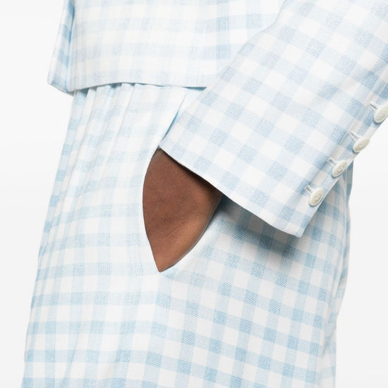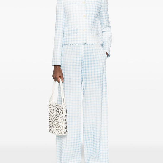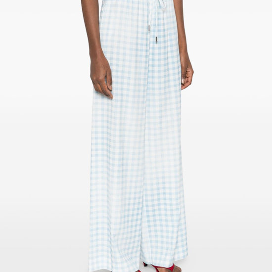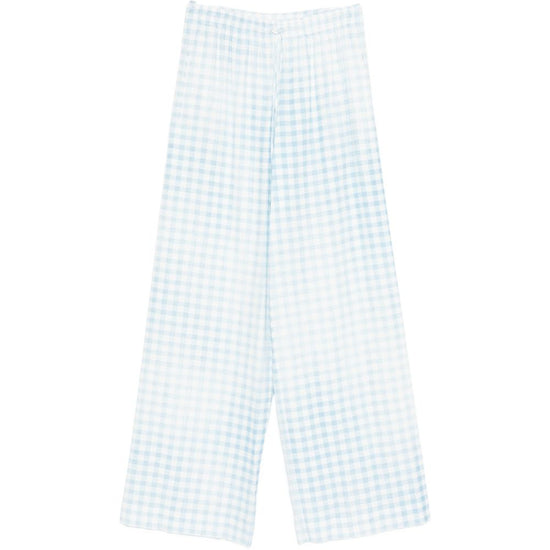 Light blue gingham pattern straight leg regular fit elastic waistline wide-leg trousers