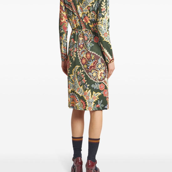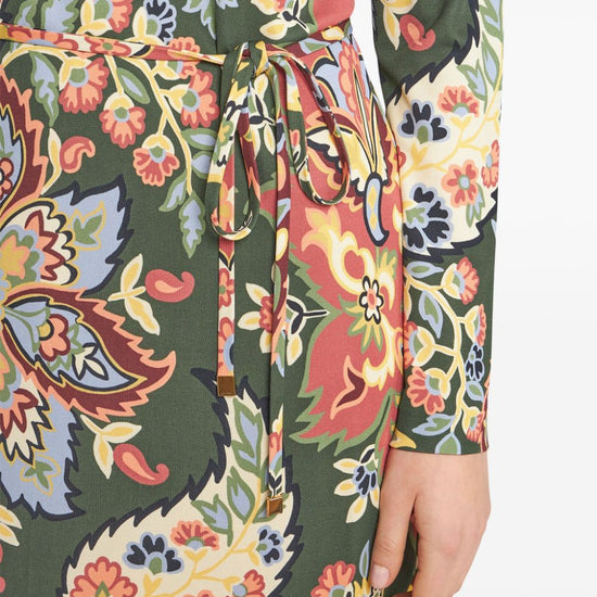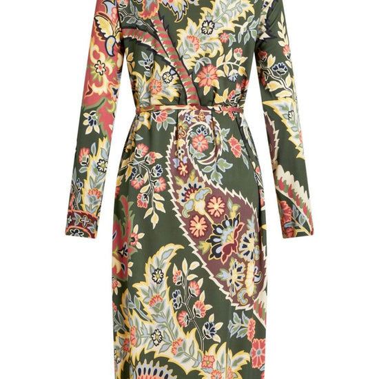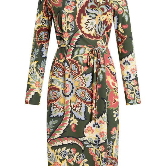 Green/multicolour abstract pattern print round neck belted waist long sleeves straight hem printed midi dress size and fit - this piece fits true to size. we recommend you get your regular size. model is 1,75m / 5ft 8in wearing size 40 (it)
