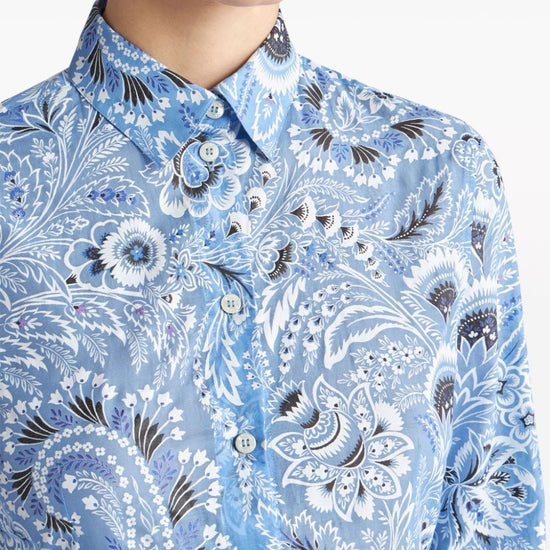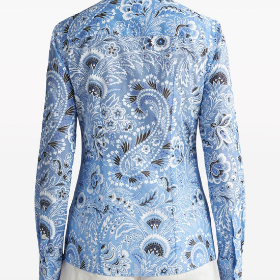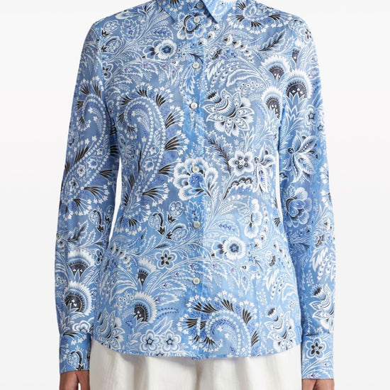 Blue/white/black cotton-silk blend paisley print spread collar front button fastening long sleeves buttoned cuffs straight hem cotton and silk blend shirt size and fit - this piece fits true to size. we recommend you get your regular size. model is 1,75m / 5ft 8in wearing size 40 (it)