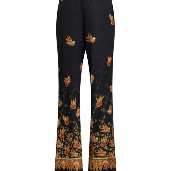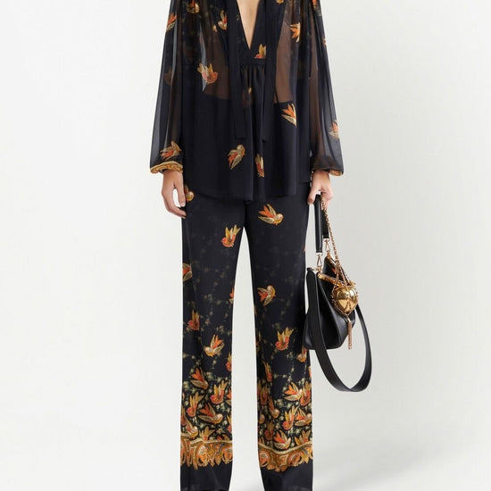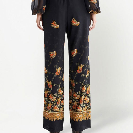 Silk paisley-print straight trousers from etro featuring black/multicolour, silk, paisley print, all-over graphic print, mid-rise, straight leg and ankle-length. printed silk trousers size and fit - this piece fits true to size. we recommend you get your regular size. model is 1,75m / 5ft 8in wearing size 40 (it)