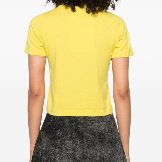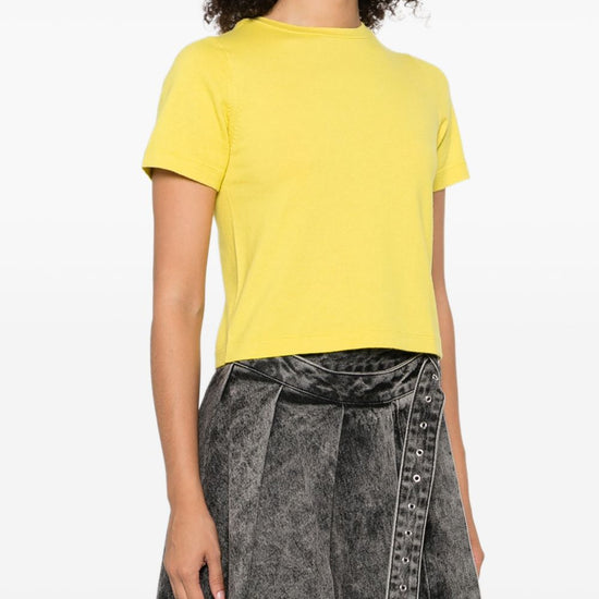 Yellow short sleeves crew neck straight hem cotton-cashmere blend cashmere t-shirt