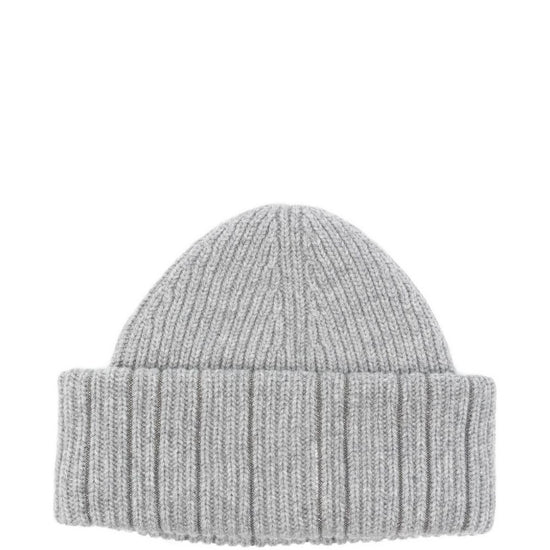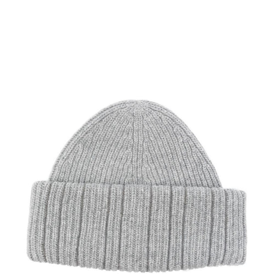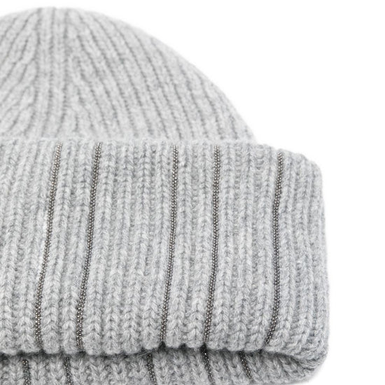 Grey ribbed texture metallic thread detail wool close-fitting turn-up brim wool beanie