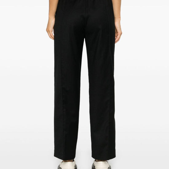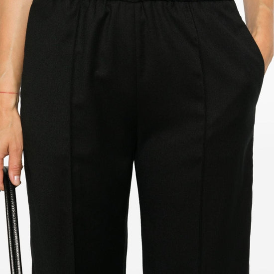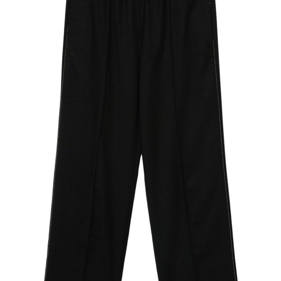 Black virgin wool blend flannel mid-rise elasticated waistband bead embellishment two side slit pockets raised seam detail straight leg wool trousers size and fit - this piece fits true to size. we recommend you get your regular size. model is 1,75m / 5ft 8in wearing size 40 (it)