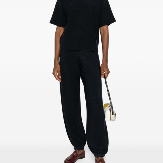 Blue elasticated waistband knitted construction wool and cotton trousers