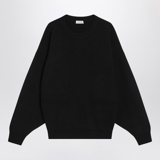 Crewneck sweater by fear of god in black virgin knitted wool, featuring long dropped shoulder sleeves, ribbed neck, cuffs and hem. size and fit - model wears size m model measurements: height: 193 cm chest: 95 cm waist: 78 cm hips: 86 cm