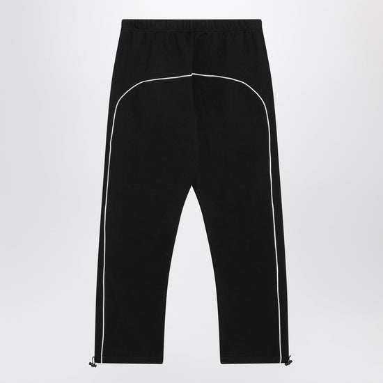 Fear of god essentials black brushed cotton jogging pants, featuring elastic waistband with drawstring, two side pockets, front rubber logo patch, contrasting trims, drawstring hem and tonal embroidered logo on the front.