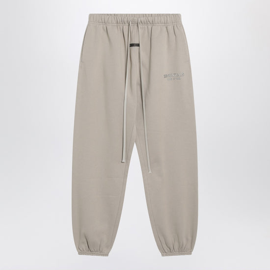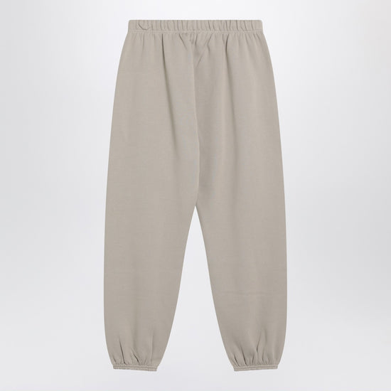Jogging pants by fear of god essentials in greige cotton blend, featuring an elasticated waistband with drawstring, two side pockets, front logo patch, dropped crotch, elasticated ankle cuffs, and raised front logo lettering embroidery. size and fit - model wears size s model measurements: height: 178 cm chest: 83 cm waist: 63 cm hips: 91 cm