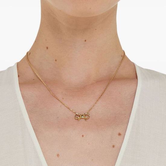 Gold-tone chain bow pendant lobster clasp fastening adjustable length vara necklace